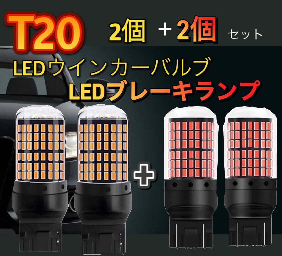 T20 LEDウインカーバルブ2個 超爆光ブレーキランプ2個 セット 抵抗内蔵 ダブル球 144連 レッド ストップランプ 赤 爆光 高輝度 カスタム led